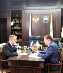 В Ставрополе в среду 6 октября состоялась рабочая встреча губернатора Владимира Владимирова с первым заместителем Думы края, первым секретарём краевого комитета КПРФ Виктором Гончаровым.