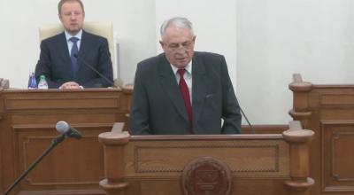 До избрания председателя АКЗС сессию вел старейший из депутатов – «единоросс» Александр Лазарев. С его стороны была сделана попытка предложить для вынесения на голосование только одного человека – Александра Романенко (главного «единоросса» региона, спикера в прежнем созыве АКЗС). Аргументом прозвучало, что таким, было решение большинства депутатов из числа входящих в оргкомитет. Но руководитель фракции КПРФ Александр Ткачев в своем коротком выступлении настоял на том, чтобы были все таки рассмотрены и вынесены на голосование всех 66-и присутствующих депутатов две кандидатуры: не только Александра Романенко, но и кандидата в спикеры от фракции КПРФ Юрия Кропотина.