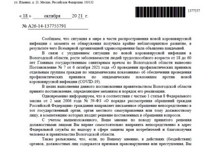 Обращение вологодских коммунистов к президенту Путину имело интересные последствия. Администрация президента обратилась за разъяснениями в правительство Вологодской области, а там почему-то решили ввести АП в заблуждение, переставив местами причину и следствия введения людоедских «ограничительных мер».