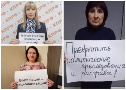 Флешмоб тульских коммунистов «4 ноября - не наш праздник!» проходит под лозунгами отмены пенсионной реформы, привлечения к ответственности фальсификаторов выборов, прекращения преследования и политических расправ над коммунистами!