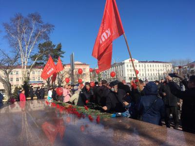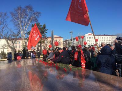 7 ноября 2021г. коммунисты г. Южно-Сахалинск , сторонники КПРФ и жители города провели торжественное мероприятие - возложению цветов к памятнику В.И. Ленину, приуроченное к 104-й годовщине Великой Октябрьской социалистической революции. Перед началом мероприятия звучала праздничная революционная музыка, в воздух запускались красные воздушные шары.