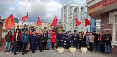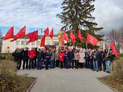 А начался этот праздничной день автопробегом по г. Липецку. Колонна автомобилей, украшенная красными знамёнами, проехала по улицам областного центра. Были остановки у памятников В.И. Ленину, на пл. Революции и у памятника И.В. Сталину. Акция коммунистов были встречена одобрением со стороны горожан. На каждой остановке проходило торжественное возложение цветов. Эту миссию было поручено исполнить офицерам общественной организации «Союз советских офицеров» под руководством А.В. Печерского.
