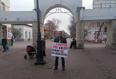 В Ейске проходит сбор подписей против введения QR-кодов для посещения общественных мест и проезда на общественном, железнодорожном и авиа-транспорте. Идут и одиночные протестные пикеты.