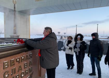 Вот время пребывания в Новом Уренгое комсомольцы положили цветы к памятнику Андрею Ивановичу Наливайко, Почетному гражданину города, ветерану труда, заслуженному строителю РСФСР, который в 80-е годы строил Новый Уренгой.
