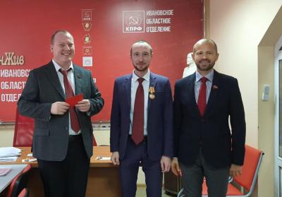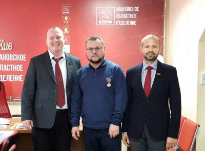 В заключение заседания лидер ивановских коммунистов А.Д. Бойков вручил ряду товарищей памятные медали, посвящённые 150-летию со дня рождения В.И. Ленина и 60-летию космонавтики.