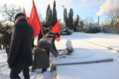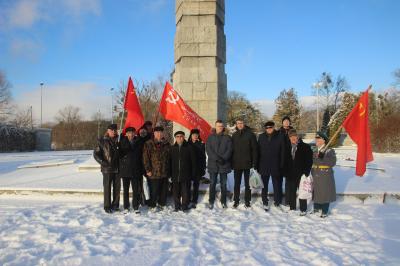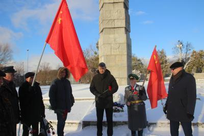 Коммунисты возложили цветы к барельефу И.В. Сталина на стеле на военном мемориале «1200 гвардейцам». Заметим, это единственное изображение генералиссимуса в Калининградской области.