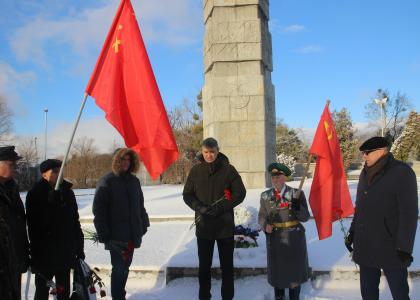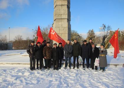 Коммунисты возложили цветы к барельефу И.В. Сталина на стеле на военном мемориале «1200 гвардейцам». Заметим, это единственное изображение генералиссимуса в Калининградской области.