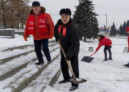 30 декабря курские коммунисты, комсомольцы, союзники и сторонники партии по традиции вышли на площадь Советов к этому монументу, чтобы возложить цветы. Но прежде под руководством 1-го секретаря КРО ЛКСМ РФ, члена ЦК ЛКСМ РФ А.И. Понарина и при активном участии лидеров курских коммунистов расчистили снег вокруг памятника, так как городские власти не считают своей обязанностью это делать.