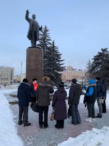 Андрей Алехин коротко выступил перед собравшимися, подчеркнув значимость фигуры В.И. Ленина для мировой истории и рассказав о работе региональной организации КПРФ по сохранению мемориального наследия советской эпохи. Так, скульптура В.И. Ленина, ранее находившаяся у входа в Законодательное Собрание области, несмотря на клинический антисоветизм действовавшего тогда губернатора, была сохранена в Областном краеведческом музее. В музее также прошла традиционная экскурсия и возложение цветов к памятнику В.И. Ленину.