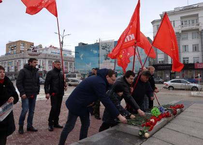 Следующей остановкой был сквер Героям-комсомольцам, где выступил первый секретарь обкома ЛКСМ Павел Степанов, он отметил: «Герои комсомольцы в годы Великой Отечественной войны показали мужественные примеры защиты границ государства, их примерами вдохновляется молодое поколение и в современной истории. Мы как молодёжь левого толка не забываем молодых героев нашей страны, не забываем славные традиции отцов и дедов».