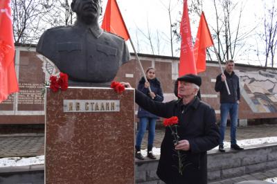 «Сталинские пятилетки развития народного хозяйства и культуры превратили первую в мире страну социализма в могучую социалистическую державу. Руководствуясь ленинскими положениями о преимущественном развитии тяжелой промышленности в деле социалистической индустриализации, большевистская партия во главе со Сталиным дала стране мощную промышленность для производства средств производства, гигантскую машиностроительную промышленность, способную обеспечить быстрое развитие всего народного хозяйства в целом, и все необходимые средства, как и обеспечить несокрушимую оборону» – сказал Олег Касаев, первый секретарь Сталинского отделения КПРФ.
