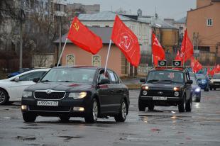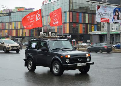 Затем, после краткого инструктажа по ПДД, колонна автомобилей с лозунгами «Даёшь масштабную индустриализацию в России!», «За развитие науки!», «Защитим свободу и независимость Донбасса!», «Первый полёт человека в космос – заслуга социализма!», «Мы за укрепление оборонной промышленности!», «Народно-патриотические силы за развитие России!», «Вперёд, к победе социализма!» и «Нет фашизму!», флагами КПРФ, ЛКСМ РФ, Советского Союза, Знамени Победы и движения «За новый социализм» выехала по улицам областного центра.
