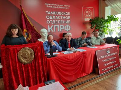 29 апреля под председательством первого секретаря Тамбовского ОК КПРФ А.И. Жидкова состоялись очередное заседание Бюро и VI (закрытый) совместный Пленум Комитета и КРК Тамбовского областного отделения КПРФ.