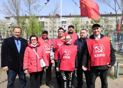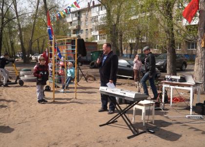 Депутат Законодательного Собрания области Константин Ткачев вместе со своими товарищами из Первомайского местного отделения КПРФ устроил праздник двора на ул. Волкова. Было шумно, весело, и много красных флагов. Ребята из детской школы искусств №10 устроили небольшой концерт – пели песни, исполняли музыкальные композиции на синтезаторе и аккордеоне, читали стихи.