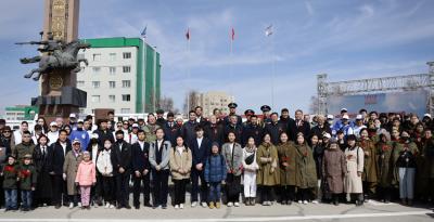 — Сегодня по всей нашей республике, как и по всей стране, поднимается Знамя Победы, которое было водружено 1 мая 1945 года над Рейхстагом, — сказал Виктор Николаевич. — В этой войне участвовали наши земляки — почти 63 тысячи якутян, из них 26 тысяч так и не вернулись из боя. Якутянин Феодосий Семенович Донской участвовал в штурме Рейхстага и на его стене написал собственной рукой: «Были и мы из Якутии». Знамя Победы — символ беспримерного героизма и мужества наших воинов, советского народа, бесконечной веры в правоту своего дела, что главным для гражданина является защита своего Отечества.