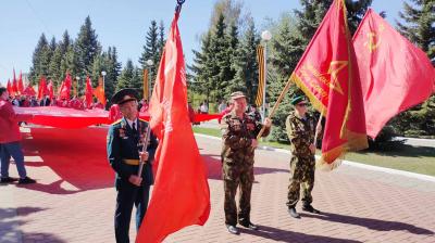 В Чебоксарах праздничную колонну составили коммунисты, комсомольцы и ветераны – члены Союза Советских офицеров, представители общественных организаций «Дети войны» и «Надежда России». От делегаций органов власти и различных провластных ветеранских организаций колонна КПРФ отличалась обилием красных флагов и копиями Знамени Победы. Комсомольцы также на зависть всем несли 15-метровое полотнище копии Знамени Победы. Кстати, ни у кого из участников мероприятия, кроме колонны КПРФ, больше копий Знамени Победы не было. Хотя законодательство разрешает размещать копии Знамени Победы на всех государственных праздниках.