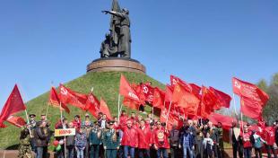 В Чебоксарах праздничную колонну составили коммунисты, комсомольцы и ветераны – члены Союза Советских офицеров, представители общественных организаций «Дети войны» и «Надежда России». От делегаций органов власти и различных провластных ветеранских организаций колонна КПРФ отличалась обилием красных флагов и копиями Знамени Победы. Комсомольцы также на зависть всем несли 15-метровое полотнище копии Знамени Победы. Кстати, ни у кого из участников мероприятия, кроме колонны КПРФ, больше копий Знамени Победы не было. Хотя законодательство разрешает размещать копии Знамени Победы на всех государственных праздниках.
