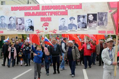 77-ю годовщину победы СССР над нацистской Германией воронежские коммунисты отметили памятной историко-патриотической акцией и участием в шествии Бессмертного полка под красными знамёнами.
