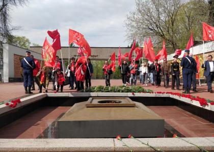 8 мая коммунисты возложили цветы к мемориалу и памятнику павшим воинам, взрослым и детям блокадного Ленинграда в Мемориальном комплексе.