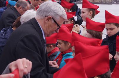 На этом мероприятия не закончились. Пионеры вместе со старшими товарищами отправились в Петропавловскую крепость. Ровно в 12.00 со стены Нарышкина бастиона прозвучал выстрел, который был посвящен столетнему юбилею пионерии. А после обеда активисты отправились на торжественный концерт.