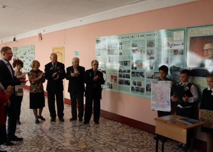 В этот день в школе было особенно торжественно и празднично. Сначала для гостей провели экскурсию по школе, которая носит имя Георга Васильевича Мясникова. Это советский партийный, государственный и общественный деятель, историк-краевед, секретарь Пензенского обкома КПСС, первый заместитель председателя правления Советского фонда культуры. Он очень много сделал для развития области, особенно культуры, образования, спорта. В ходе экскурсии учащиеся рассказали об этом замечательном руководителе.