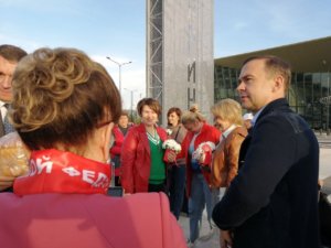 Саратовские коммунисты и комсомольцы с красочным транспарантом «Приветствуем участников семинара-совещания КПРФ ПФО!» радушно встретили московских товарищей в аэропорту «Гагарин».