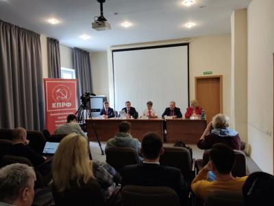 В первый день работы семинара-совещания региональных отделений КПРФ Приволжского федерального округа (ПФО) состоялась пресс-конференция для саратовских СМИ. Спикерами выступили первый заместитель Председателя ЦК КПРФ Ю.В. Афонин, член президиума, секретарь ЦК КПРФ С.П. Обухов, член ЦК КПРФ, председатель ООД «ВСЖ - Надежда России» Н.А. Останина, член Президиума, секретарь ЦК КПРФ, руководитель юридической службы Г.П. Камнев.