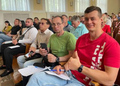 Завершая выступление, Н.И. Осадчий напомнил об успехах и победах спортивного клуба КПРФ – особенно в шахматах и мини-футболе, а затем вручил капитану футбольной команды «КПРФ-Краснодар» Виталию Григорову медаль «За заслуги в развитии спортивного движения КПРФ».