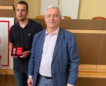 Завершая выступление, Н.И. Осадчий напомнил об успехах и победах спортивного клуба КПРФ – особенно в шахматах и мини-футболе, а затем вручил капитану футбольной команды «КПРФ-Краснодар» Виталию Григорову медаль «За заслуги в развитии спортивного движения КПРФ».