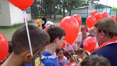 1 июня курские коммунисты привезли в детский лагерь «Олимпиец» сладкие подарки, шарики. Двор сразу окрасился в яркие цвета – детский праздник удался!