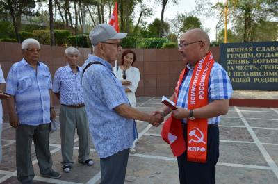 Перед собравшимися выступили глава коммунистов Калмыкии Николай Нуров, ветераны труда Василий Даваев и Виктор Гончаров. Виктору Емельяновичу в священном для жителей Калмыкии месте вручили в этот день партийный билет. По словам вступившего в КПРФ товарища, «сейчас такое время, что в стороне оставаться никому нельзя, всем надо активно браться за преображение страны».