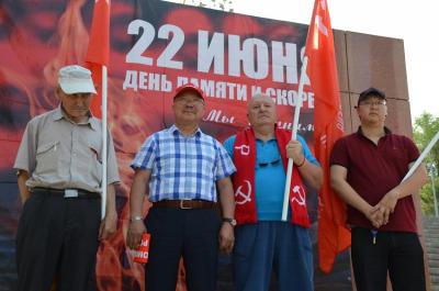 Акции памяти, организованные коммунистами, состоялись в этот день в районных центрах, во многих селах и поселках Калмыкии. Городовиковские коммунисты, к примеру, приняли участие в митинге Памяти и скорби и провели акцию «Я знаю, как выглядит Знамя Победы». Дети и подростки, пользуясь трафаретом, своими руками изготавливали копии Знамени Победы и брали их с собой, чтобы вывесить 24 июня, в день легендарного парада Победы, состоявшегося в Москве в 1945 году.