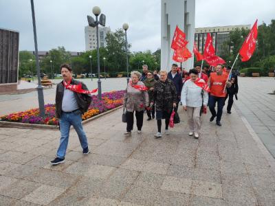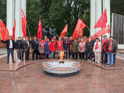 Построившись в колонну, стройными рядами подошли к вечному огню на исторической площади, затем переехали к центральному мемориалу и возложили гвоздики к монументу. Впереди шли знаменосцы с флагами КПРФ и копиями знамени победы. У каждого памятника была сделана фотография. Память о погибших в годы Великой отечественной войны никогда не сотрется из памяти благодарных потомков.