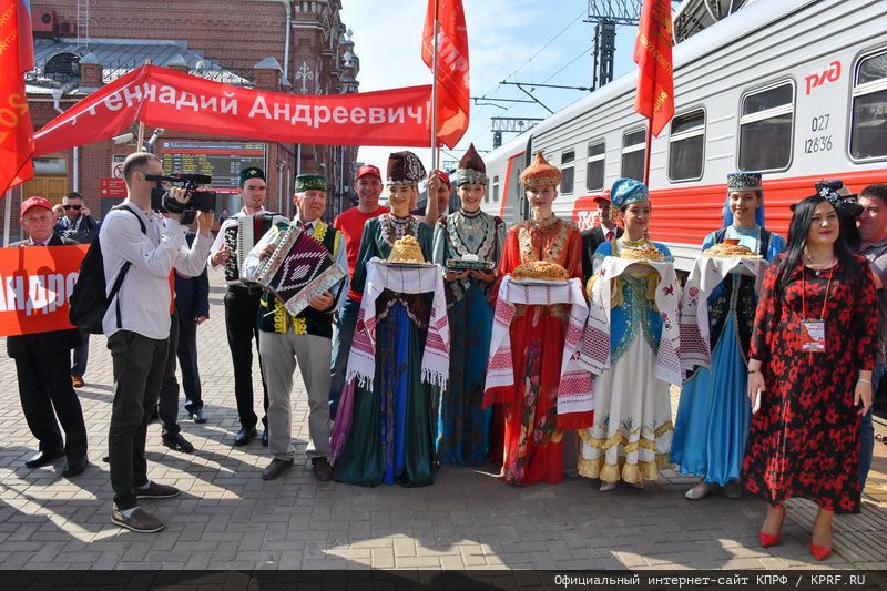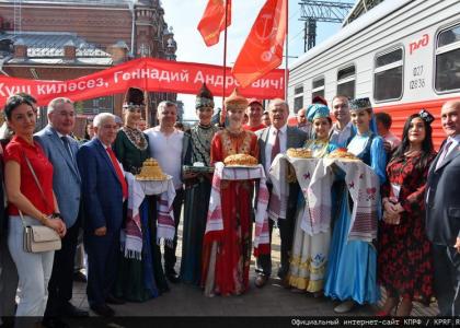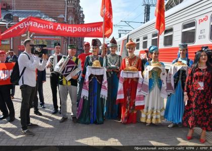 На вокзале в Казани гостей из Москвы под красными флагами встречали местные коммунисты, возглавляемые первым секретарем Татарстанского рескома КПРФ Х.Г. Миргалимовым.