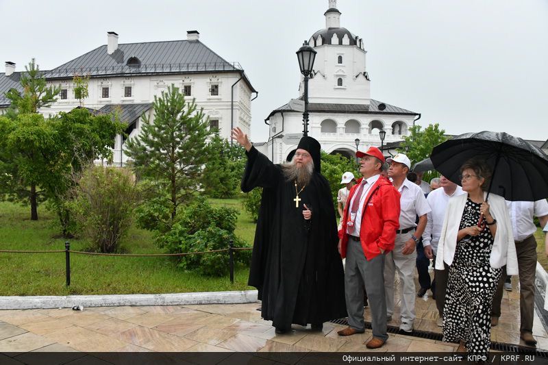 В завершение программы первого дня лидер коммунистов посетил музей-заповедник "Остров-град-Свияжск". Здесь делегацию ЦК КПРФ ознакомили с экспонатами музея, отражающими развитие основанного Иваном Грозным города. Кроме того, коммунисты посетили Успенский Богородицкий монастырь, в котором сохранились уникальные фрески XVI века.