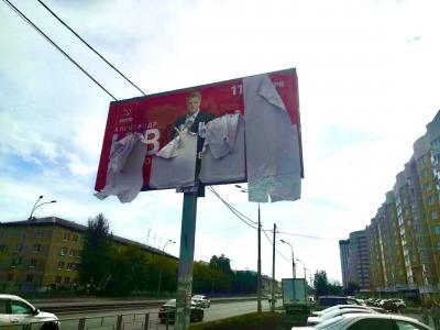 После серии десятков сорванных баннеров кандидата в губернаторы Александра Ивачева, было принято решение использовать более надежное крепление и другой материал плаката. Новые баннеры злопыхателям оказались «не по зубам», и после ряда неудачных попыток содрать бумагу под светом полной луны горе-разбойники решили напакостить по-особенному. Они притащили четыре больших куска белой подложки от плёнки и заклеили ими баннер, используя чёрную краску.