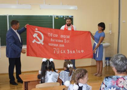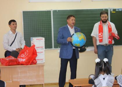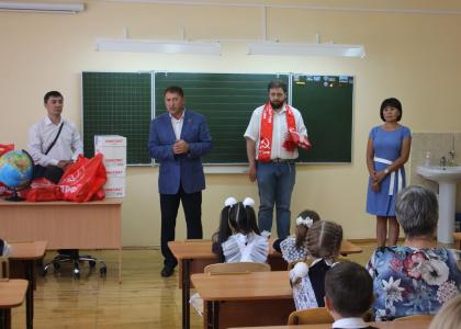 В преддверии начала учебного года канцелярские товары, учебные и наглядные пособия особенно необходимы для воспитательного процесса. Помимо школьного инвентаря, башкирские коммунисты подарили школе копию знамени Победы.