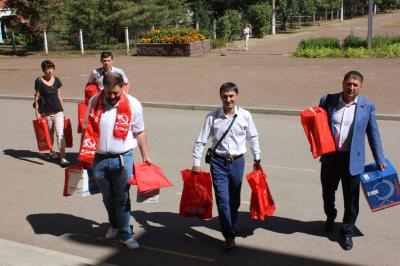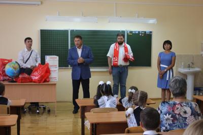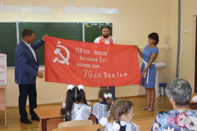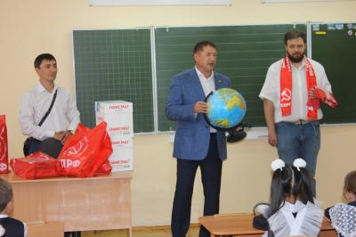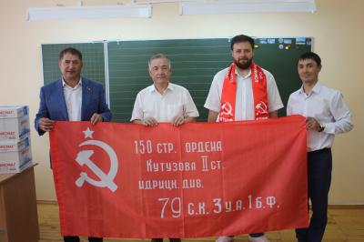 В преддверии начала учебного года канцелярские товары, учебные и наглядные пособия особенно необходимы для воспитательного процесса. Помимо школьного инвентаря, башкирские коммунисты подарили школе копию знамени Победы.
