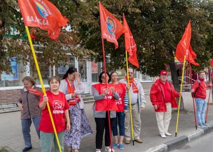 В рамках Всероссийской акции протеста, проводимой Коммунистической партией Российской Федерации, в минувшую субботу 20 августа курские коммунисты вышли на улицы города Курска, чтобы выразить возмущение против продажи муниципального имущества, находящегося в государственной собственности, но по решению депутатов Курского городского Собрания от «Единой России» и «Справедливой России» теперь предназначенного для продажи в частные руки.