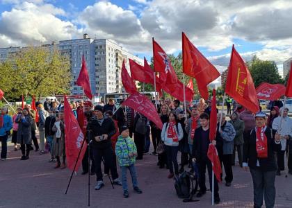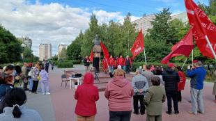 Открыла и вела митинг первый секретарь Октябрьского РК КПРФ Лилия Кривцова. Она передала слово депутату госдумы Владимиру Исакову, который вместе с Денисом Сидоровым вручил группе молодых товарищей комсомольские и партийные билеты.