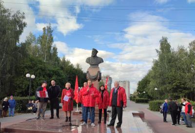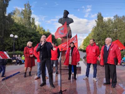 Открыла и вела митинг первый секретарь Октябрьского РК КПРФ Лилия Кривцова. Она передала слово депутату госдумы Владимиру Исакову, который вместе с Денисом Сидоровым вручил группе молодых товарищей комсомольские и партийные билеты.