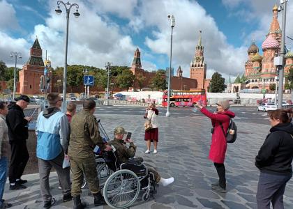 Бойцам, находящимся на лечении в Подмосковье очень хотелось взглянуть на Москву вблизи, своими глазами. Для поездки удалось найти небольшой автобус, где смогли разместиться 16 человек. В Москве бойцов ждали руководитель Хамовнического Местного отделения ВЖС «Надежда России» Татьяна Ананьина и известный московский экскурсовод Анна Блинова, представляющая Благотворительный фонд «Культура. Экология. Социальное сотрудничество».