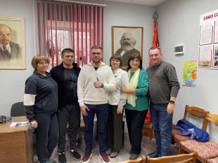 Секретарь крайкома партии Александр Сафронов вместе с активистами Романом Поливодой и Екатериной Сандецкой пожелали добровольцу удачи и вручили ему необходимые элементы экипировки.
