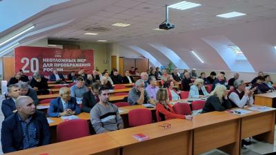 По первому вопросу повестки дня «Укрепление депутатской вертикали КПРФ и повышения её роли в защите прав трудящихся в ходе подготовки и празднования 100-летия образования СССР» выступил член ЦК КПРФ, первый секретарь крайкома КПРФ, первый заместитель председателя В. И. Гончаров.