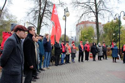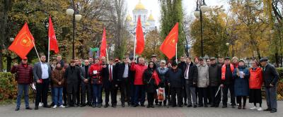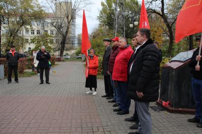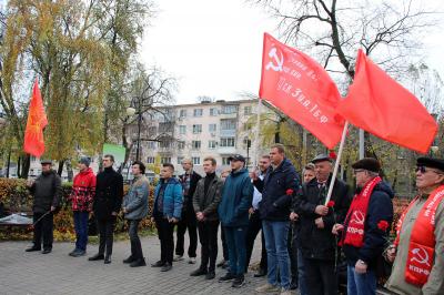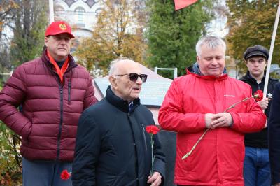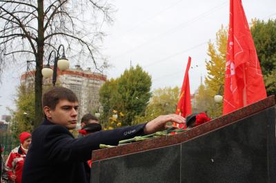 По инициативе Воронежских областных отделений КПРФ и ЛКСМ РФ 104-я годовщина со дня основания Ленинского комсомола была отмечена возложением цветов к памятному знаку в честь 100-летия ВЛКСМ в Комсомольском сквере и встречей комсомольцев всех поколений.