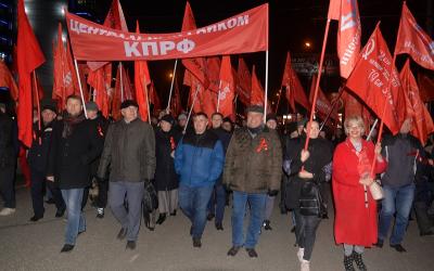 В шествии, посвященном долгожданному открытию стелы «Город трудовой доблести» приняли участие представители трудовых коллективов и общественных организаций. Колонну КПРФ возглавили секретари областного комитета – Ренат Сулейманов, Алексей Русаков, Роман Яковлев, заместитель председателя Горсовета Антон Тыртышный, депутат Законодательного собрания Виталий Быков. Коммунисты начали движение с пения «Интернационала», красная колонна прошла по Красному проспекту в сторону площади Калинина. Здесь уже собрались десятки жителей города, желающие присутствовать при историческом событии.