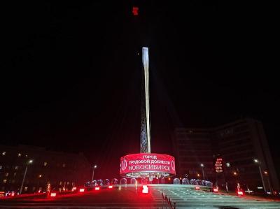 Особенность новосибирской стелы – это не только ее высота, но и мультимедийное оборудование. С большого экрана транслировалась информация о вкладе города в Великую Победу, рассказывалось о роли каждого предприятия. Ведь Новосибирск во время войны – это не только центр авиационной и артиллерийской промышленности, но и крупнейшее на тот момент в мире хранилище культурных ценностей, и «всесоюзный госпиталь».