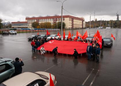 Сталинградские коммунисты встретили годовщину Великого Октября массовым автопробегом и возложениями цветов.