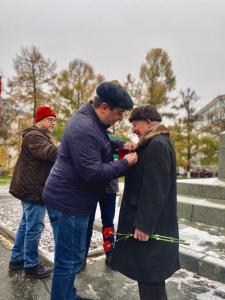 Мероприятие началось с награждения медалью в честь 100-летия со дня образования СССР ветерана Виктора Михайлова. На днях ему исполнится 91 год.