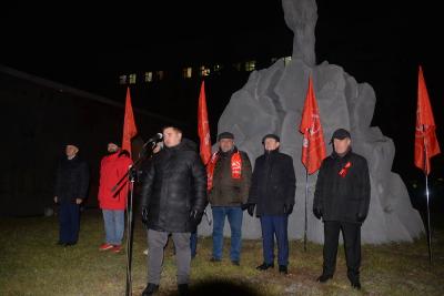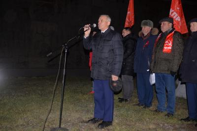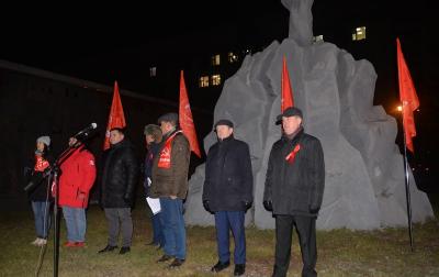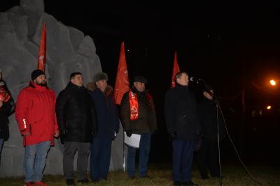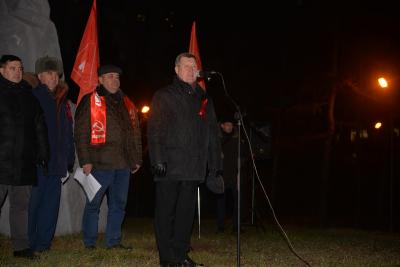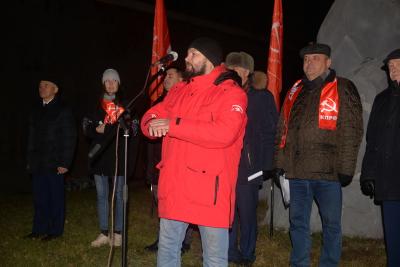 Перед началом торжества руководство областного отделения возложили цветы к памятнику Ленину. Параллельно в сквер Героев революции организованно стали подходить представители районных партийных отделений. Своеобразным центром притяжения стала растяжка с лозунгом «Россия будет великой и социалистической». Кстати, в этот день факел в сквере, без которого трудно представить себе современную историю Новосибирска, «отметил» столетний юбилей. Об этом напомнил, открывая митинг, депутат Государственной Думы, второй секретарь Новосибирского областного комитета КПРФ Ренат Сулейманов.